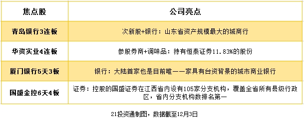 12月3日,两市成交量没有持续放大,大金融板块继续分化,部分资金选择观望;尾盘核心标的青岛银行出现开板,国盛金控炸板,厦门银行大幅跳水。