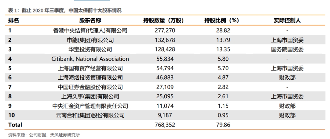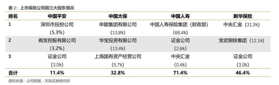 分散化股权结构,上海市国资委管理模式较为先进。公司股权结构较为分散,除香港结算所和花旗银行外,仅有三家机构持股占比超过 5%,分别为申能集团(13.8%)、华宝投资(13.4%)、上海国有资产经营有限公司(5.7%),公司最大的股东为上海市国资委,直接和间接的实际持股比例为 22.1%。上海市国资委的管理模式较为先进,且整体分散化的股权结构有利于发挥制衡作用,为集团管理层带来更大的主观能动性空间,保险业务的执行战略受到股东的影响相对较小。且在聚焦价值的战略导向下,集团考核董事会、董事会考核寿险总公司、寿险总公司再拆解到各个分支机构,自上而下均以价值增长为主要目标。