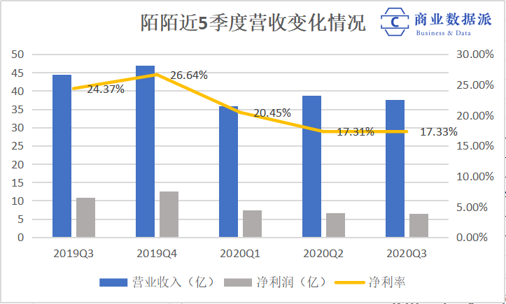 财务报表上的数字也并不算好看。Q3营收37.7亿,同比下降15%,净利润6.5亿,同比下降48%,财报解释是受到新冠肺炎的影响。但事实上,互联网产品在疫情期间一度活跃度暴涨,且随着全国疫情的好转,多数企业的经营情况已经在Q3回归平稳。
