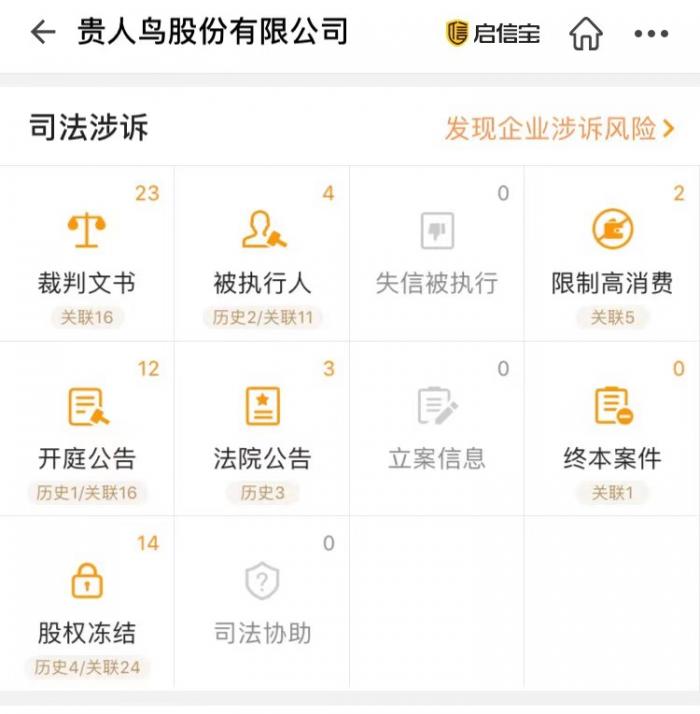 目前,贵人鸟股份有限公司名下有4条被执行人信息,限制消费令2条。