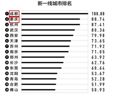 在今年三季度,成渝双城经济圈也亮出精彩成绩表,整体实力再上新台阶。根据第一财经-新一线城市研究发布的《2020城市商业魅力排行榜》,连续第五年按商业资源集聚度、城市枢纽性、城市人活跃度、生活方式多样性和未来可塑性五大维度为中国内地337个地级及以上城市的商业魅力指数排名。根据该排行榜,2020年,在15个进入“新一线”的城市中,成都与重庆分别位列第一第二。