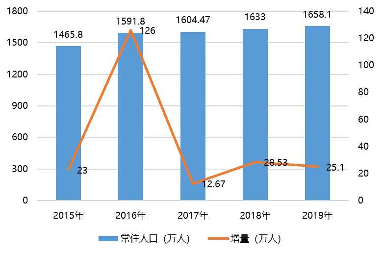 不可否认,作为国家战略之一,成渝地区双城经济圈实际上已被提升至京津冀、长三角、粤港澳大湾区之后的“中国经济第四极”的地位。同时,在“一带一路”节点城市,西部陆海新通道中,成都和重庆都位列最重要的城市。这些无疑都提升了成渝在国内以及国际上的地位。在“中国经济第四极”的标签背后,人口的增长聚集效应贡献了巨大的推动力。据成都市统计局发布,2019年末成都市常住人口为1658.1万人,比2018年增加了25.1万人。重庆市此前也发布,2019年重庆全市常住人口3124.32万人,比上年增加22.53万人。(数据来源:中商产业研究院)根据第一财经近五年数据梳理,成都和重庆两个西部特大中心城市,两地合计几乎每年都增加近50万人,其人口新增规模在全国城市中领先。尤其在成渝地区双城经济圈的带动下,成渝将可能成为中国人口流向新的目的地。随着人口进一步向城市群都市圈和中心城市聚集,消费能级和购房需求也将随之进行提升。