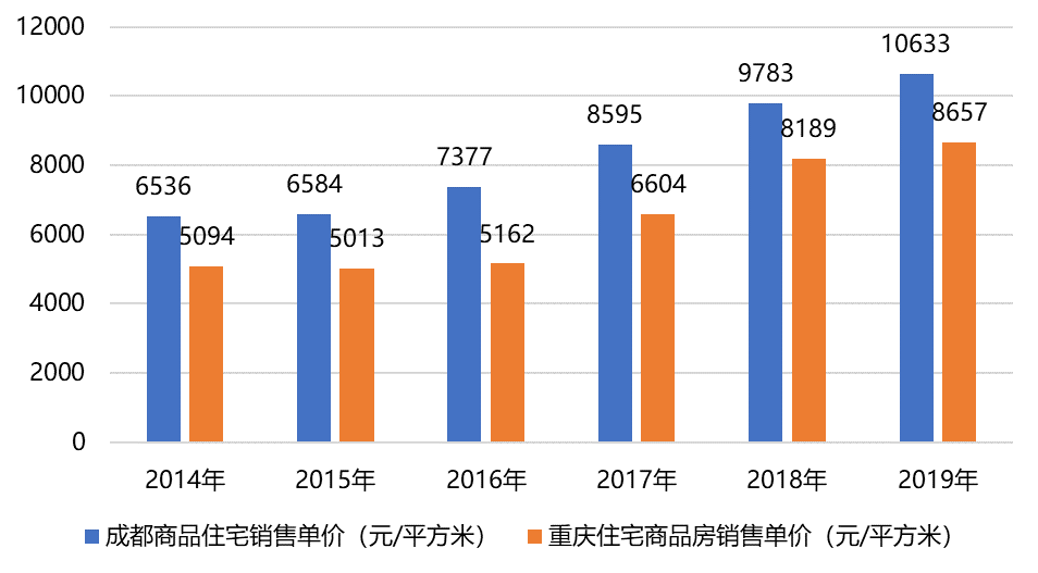 成渝联手起来,将形成巨大规模效应。2019年,成渝房地产投资7051万亿,占全国的10.40%;商品房销售面积9639万方,占全国的16.2%;商品房销售额8980亿元,占全国的11%(数据来源:川渝高峰论坛)。两地本身成交量大,加在一起规模更大。