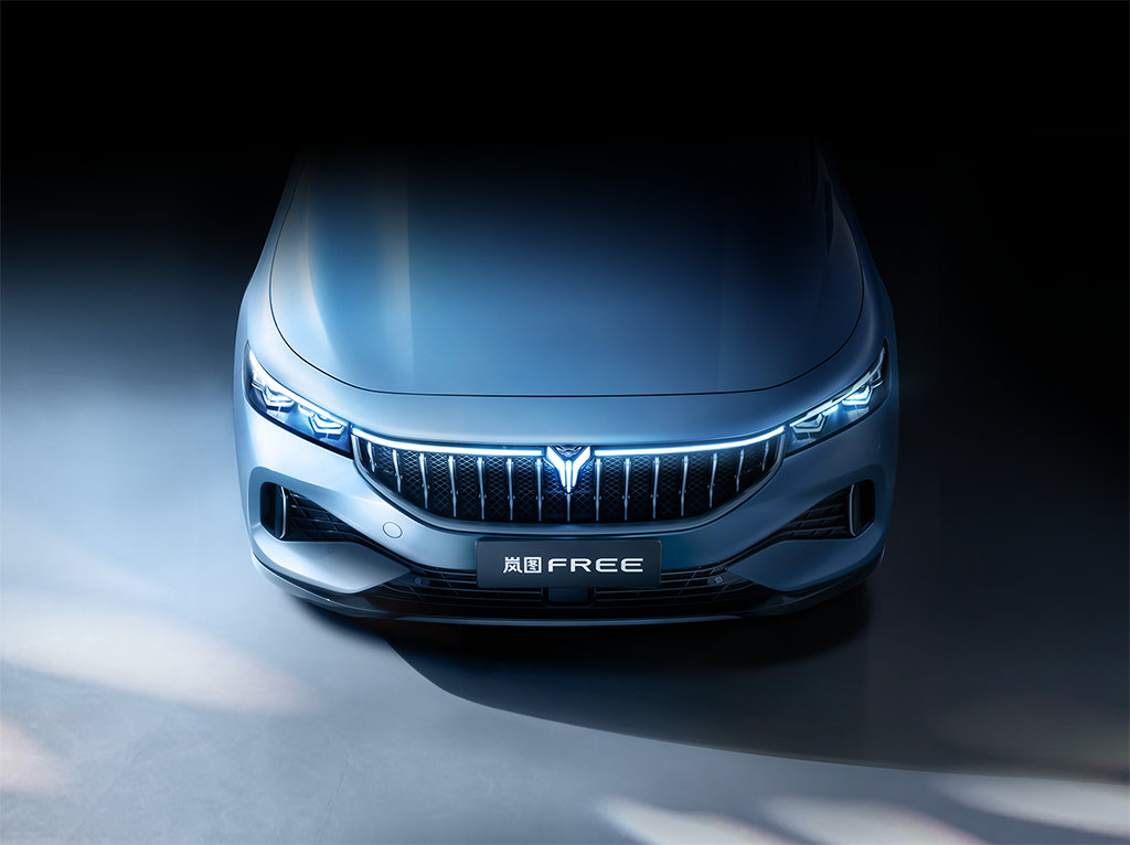 岚图FREE的外观造型基于岚图iFree概念车打造,从目前公布的图片资料我们知道,岚图FREE量产车型与iFree概念车型的神韵非常相似,但由于量产版的前脸线条较为保守,唯一有点新能源科技感的部分是连接岚图车标的贯穿式灯带。