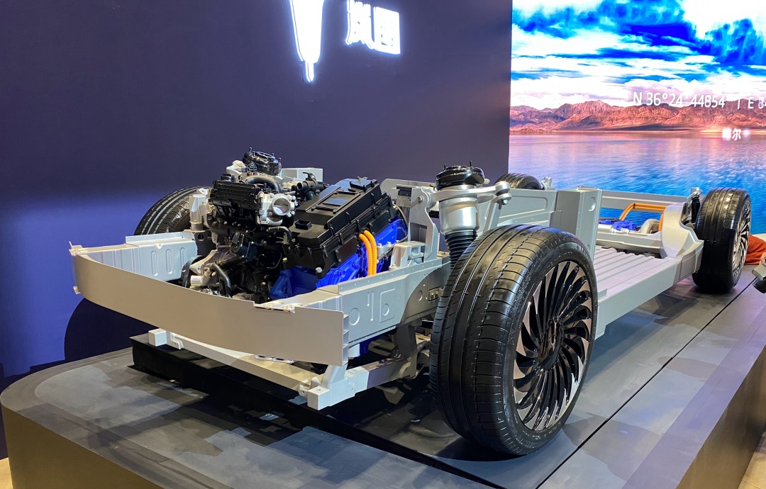 动力方面,新车将采用增程式与纯电驱动两种动力形式,増程版车型搭载了1.5T四缸增程器和电机、电池组,纯电版车型则采用两个电机带来四轮驱动能力,同时,新车将配备前双叉臂、后多连杆独立和空气避震。