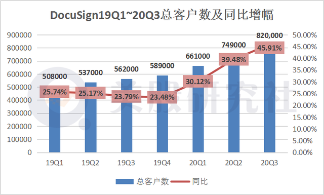美股研究社认为除了疫情因素以外,行业马太效应和持续不断增长的大客户数量也是推动Docusign营收加速增长的一个重要原因。