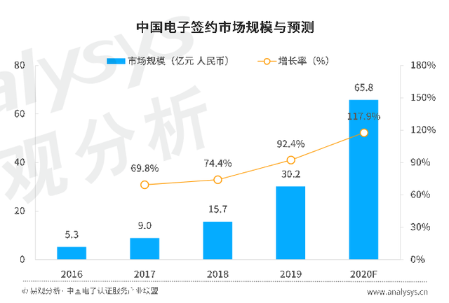 中国的电子签约市场处于高速发展阶段,2019市场规模约30.2亿元,增长92.4%,还有比较大的发展空间,电子签名行业技术门槛相对而言没那么高,难的是迅速抢占市场拿下客户的转换成本形成口碑效应。在全球电子签约行业做到绝对优势的Docusign的一些经验就对国内企业具有一定的借鉴意义了。