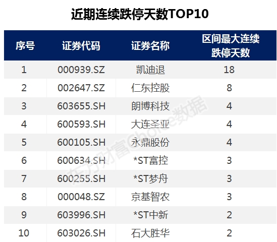 而近期连续跌停闪崩的妖股、庄股还不止仁东控股一家!近期连续跌停天数排行榜上,除了退市凯迪和ST股以外,仁东控股、朗博科技、大连圣亚、永鼎股份、京基智农、石大胜华等前期“大牛股”纷纷闪崩跌停!
