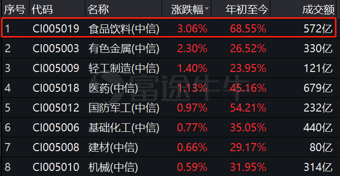 A股方面,相关消费板块也迎来爆发!食品饮料、奢侈品、啤酒、白酒等板块涨幅居前,而银行、证券、博彩、种业、房地产、汽车整车等板块跌幅居前。