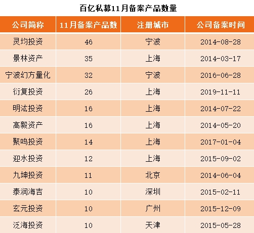 据统计,11月40家百亿级私募密集备案新产品合计321只。具体来看,灵均投资备案了46只产品,而去年同期仅备案6只。景林资产备案了35只产品,为其去年同期备案产品数的近5倍。幻方量化、衍复投资、高毅资产则分别备案了32只、26只、16只新产品。