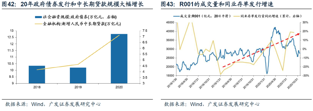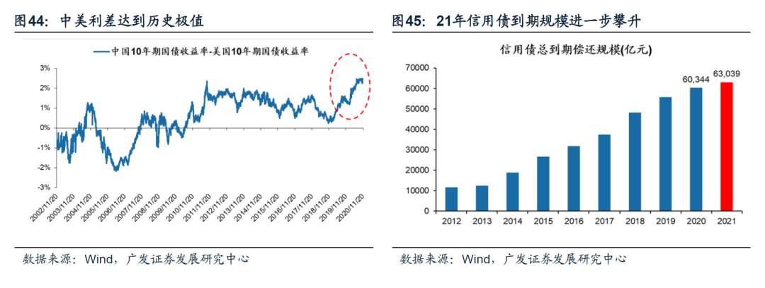 预计21年货币政策将“稳健”为主,若货币持续收紧则会提升“系统性风险”的风险,“稳货币”是21年的货币主线。2021年,货币环境面临四大压力——其一,是中期来看21年银行长久期债券配置力量减弱:20年长期贷款大幅增长、长久期地方债大量发行背景下,当前银行资产负债期限出现错配。资产端降久期需求叠加信用违约债基赎回下,即便利率大幅上行具备强吸引力,配置长久期的利率债的力量仍受限,长端无风险利率承压。其二,是回购市场和同业负债的依赖加强:利率中枢下行Carry减少下,金融机构愈发依赖回购市场杠杆;结构性存款压降,负债向同业转移,银行同业负债需求显著回升。依赖性的提升使得金融机构在回购和同业利率价格大幅上行时也不得不接受“量价齐升”,市场杠杆变得脆弱。其三,是中美利差达历史极值:当前中美利差达到2002年以来的历史极值,人民币存在进一步升值压力,货币政策不宜过紧。其四,是21年是企业偿债周期高峰:21年信用债到期规模相较20年进一步攀升,企业进入新偿债周期高峰。随着经济修复,货币宽松的必要性下降,货币回归中性的合意性上升。但在四大压力共同作用下,货币持续收紧则会提升“系统性风险”的风险。预计21年货币政策将“稳健”为主,保持市场流动性合理充裕,货币政策收紧的一阶导已经过去。