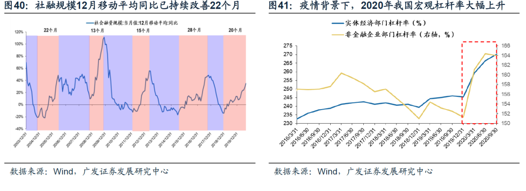 21年“紧信用”是基本确定的——监管更重“稳杠杆”和风险防范化解。2021年,社融增速预计将进入新一轮回落周期,截止20年10月,社融规模12月移动平均同比持续改善22个月,超过历史均值19.5个月,预计本轮社融高点将出现在20年四季度,中性预计明年社融增速回落至12%以下。明年“紧信用”是基本确定的:(1)在疫情背景下,2020年我国宏观杠杆率大幅抬升,三季度货币执行报告中提出“保持宏观杠杆率基本稳定”,传递了显著的“稳杠杆”信号;(2)继20年信用债到期规模创下历史新高后,21年信用债到期规模进一步增加;(3)21年资管新规过渡期结束,部分疑难存量资产如非标准化债权、非上市股权资产、不良资产、银行资本补充工具等面临化解难题。但当前的“稳杠杆”与18年“嵌套空转”下的“去杠杆”具有本质不同,在“降低实体融资成本”政策导向下,21年信用主线将是“缩量稳价”,监管环境将更重视“稳杠杆”以及风险的防范和化解。