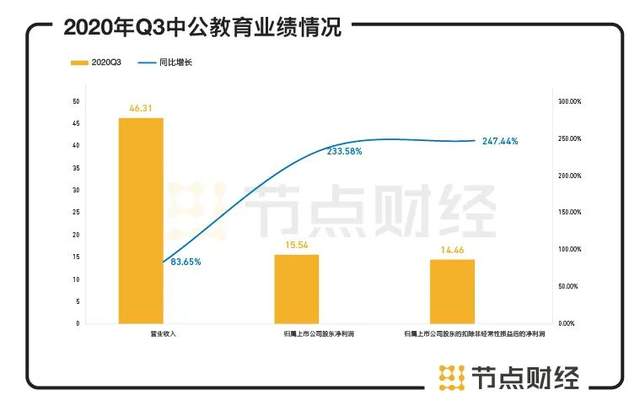 并且,当年借壳时,中公教育进行了业绩对赌,今年是对赌的最后一年,按照承诺,中公教育今年扣非净利润不能低于16.50亿元。中公教育发布年中报时,市场曾质疑其是否能完成对赌,但通过三季度业绩大振,让中公教育提前完成对赌。