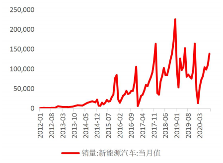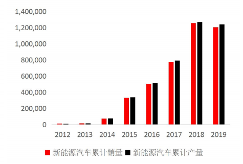 在中央及地方政府大力补贴之下,新能源汽车产业逐渐进入了从0到1的转变,新能源汽车销量逐年提升。根据Wind数据统计,截至2020年10月,2012年以来新能源汽车累计销量超过507.6万辆,累计产量达到517.8万辆,已完成2012年提出的累计产销超过500万辆的目标。
