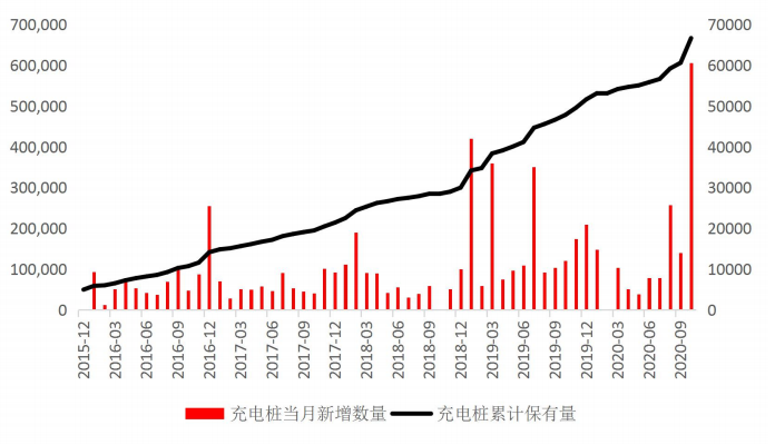 此外,2019年起,政策加大了对充换电等新能源汽车基础设施领域的支持和补贴力度。根据Wind数据统计,2019年以来,除2020年上半年疫情影响外,我国充电桩新增数量较此前显著提高。