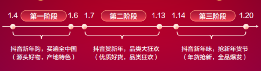 那么,直播电商平台年货节玩法如何?以目前公布了详细营销玩法的抖音电商为例: