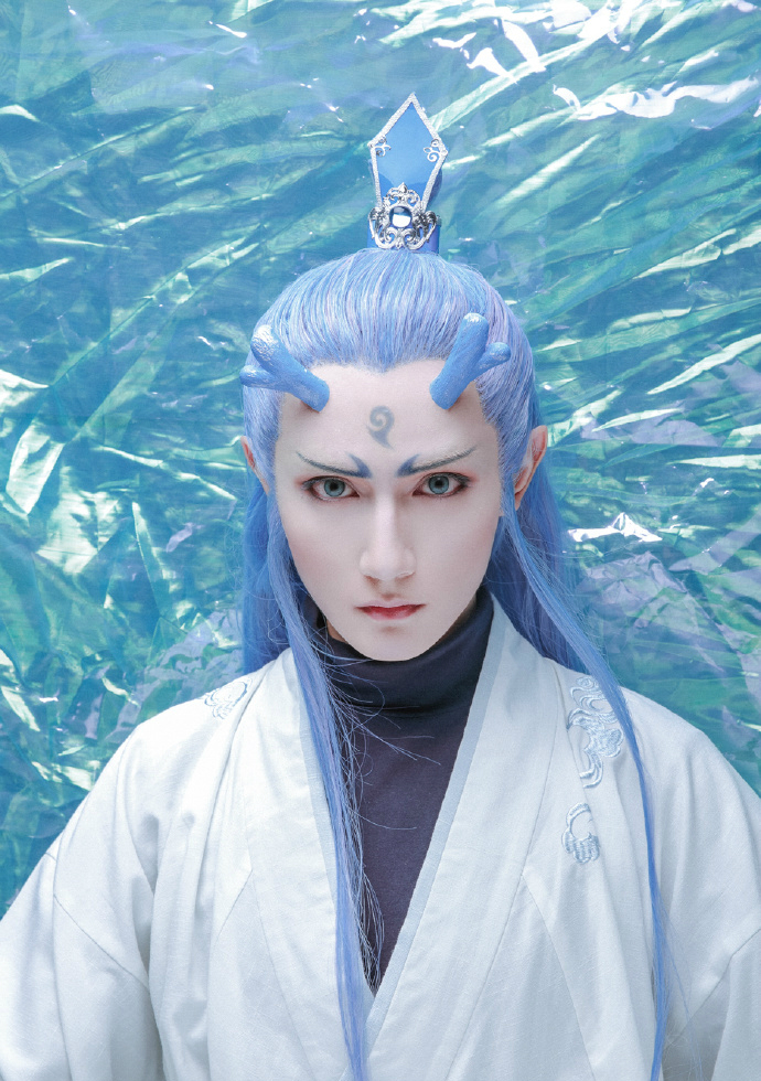 图为黄靖翔COS动漫电影《哪吒之魔童降世》中“敖丙”