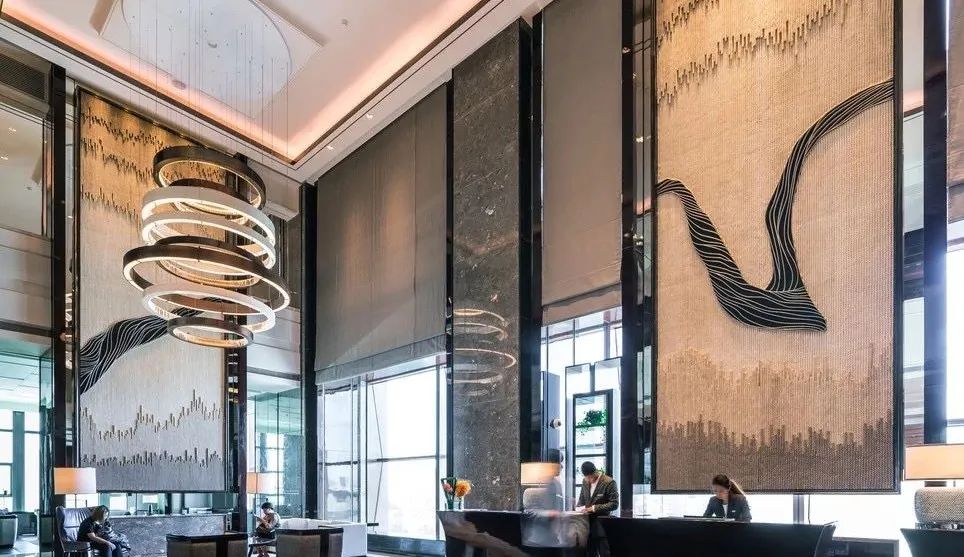 位于7楼的酒店大堂拥有大气磅礴的开阔空间。各种经典的文化符号与质感丰富的装饰材料给客人一股清新的上海风,也体现了酒店的独特风格。