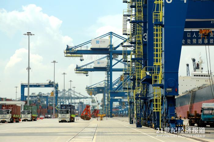 东莞外贸的强势反弹,从东莞港的繁忙程度也可见一斑。东莞港务集团提供给21世纪经济报道的数据显示,截至11月份,集团下属码头公司外贸箱量逆势增长21.56%;新开通航线2条东南亚航线(东莞-马来西亚、东莞-柬泰),外贸航线可分配舱位利用率100%,出口货量同比增长30%-40%;东莞虎门港综合保税区1-10月进出区货值1106.6亿人民币,同比增长10.8%。