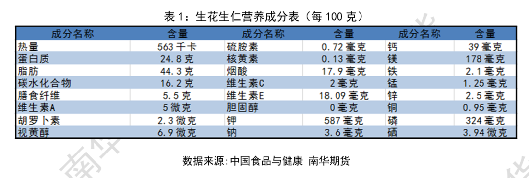 花生的主要成分包括蛋白质、脂肪和糖,各种营养成分全面且相对均衡。花生蛋白质含量达 24%-36%,在所有农作物中仅次于大豆,且蛋白质可消化率和赖氨酸可吸收率高于大豆。花生蛋白与动物蛋白相近,但不含胆固醇,富含人体必需的 8 种氨基酸,特别是谷氨酸和天门冬氨酸含量较高。