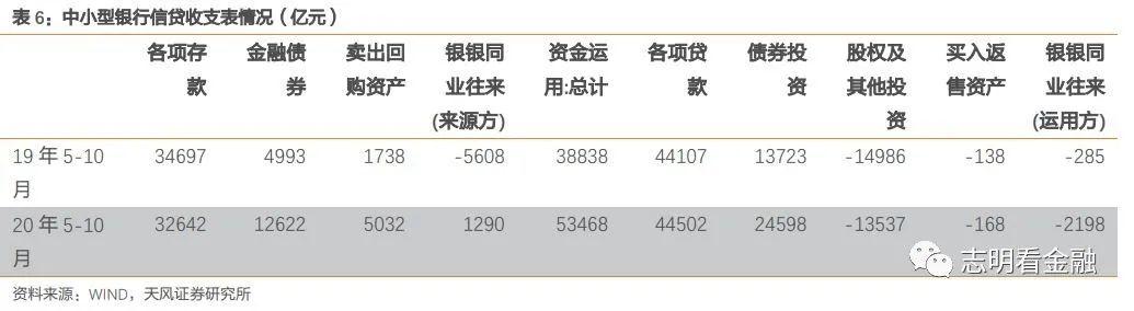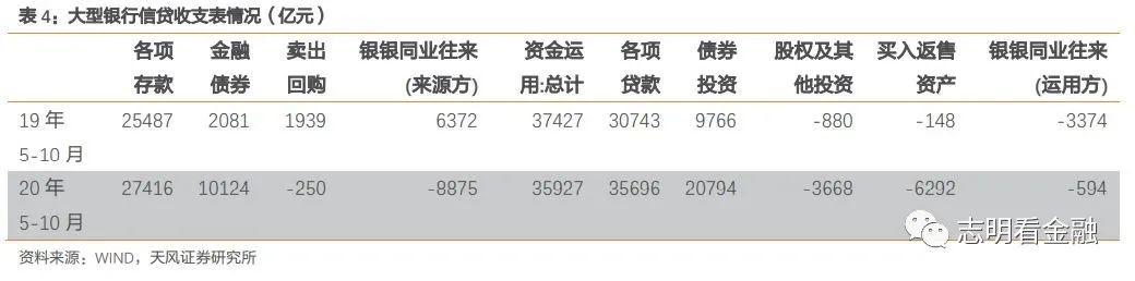 优化资产结构。此外,资产端来看,20年5月初-10月末期间大型银行资产端同比略微少增,压降了信贷及债券投资之外的资产规模,如明显压降了股权及其他投资、买入返售等资产。
