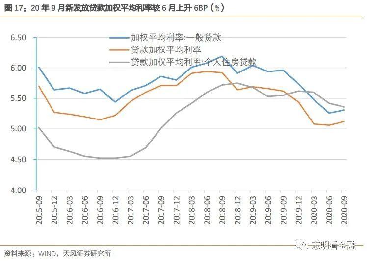 贷款利率基本进入上升通道,21Q2开始息差有望改善。今年上半年信贷大幅增长后,20Q3以来信贷政策边际收紧而需求改善,银行优先收益率较高的个人及企业中长期信贷投放,而压降低收益率的票据贴现及企业短贷。9月新发放贷款加权平均利率5.12%,较6月上升6BP,18Q3以来的贷款利率下降或已结束,新发放贷款利率逐步进入上升通道。考虑到市场利率上升对负债成本的影响及资产负债久期错配,我们预判21Q2开始银行净息差进入改善通道。