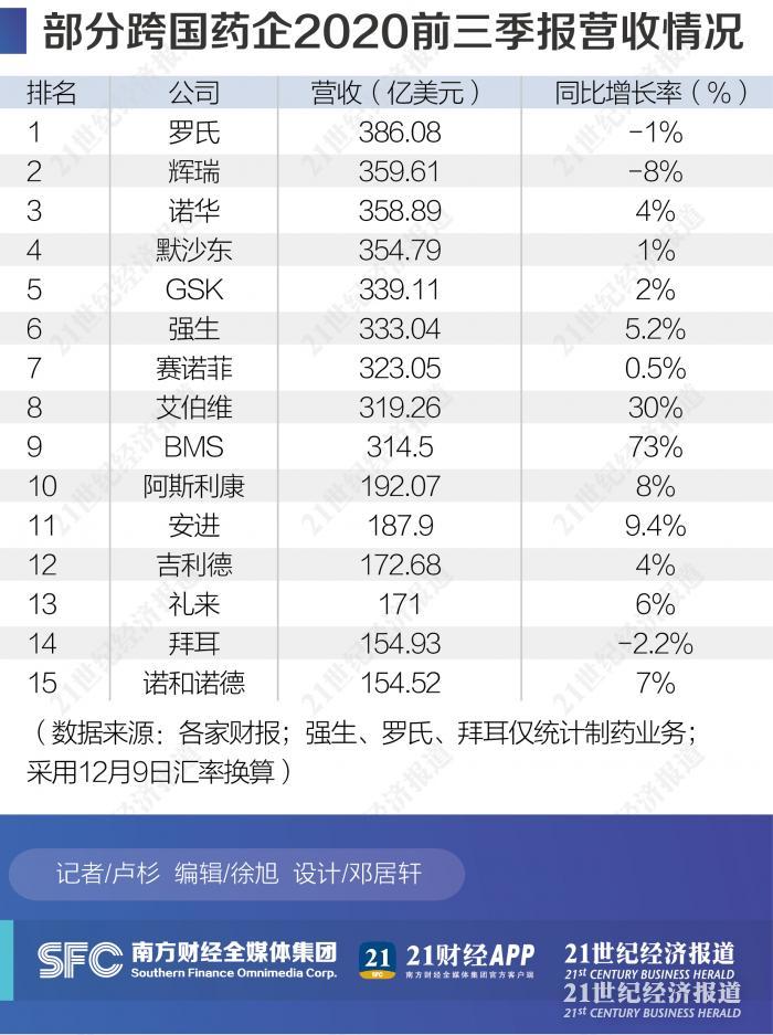 21深度|前三季度“业绩考”:看跨国制药巨头如何在疫情大流行中“满血复活”