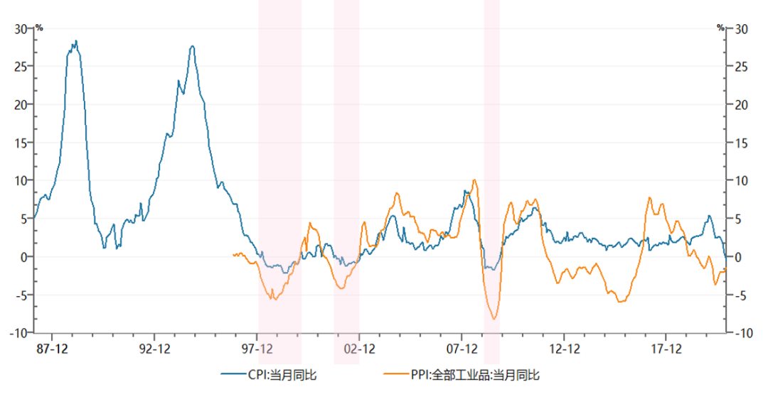 今天公布的11月CPI同比下降0.5%,环比下降0.6%,远超市场预期,同时PPI也同比下降了1.5%,与CPI形成“双通缩”格局。从历史看,我国CPI与PPI同时出现负增长并不多见,1998年2月到1999年12月,受东南亚金融危机影响,我国出现了近两年的CPI及PPI“双通缩”,此次通缩的余波后来持续到2002年,2001年9月到2002年11月,我国再次出现了断断续续的“双通缩”现象。2009年2月到10月,受全球金融危机冲击,CPI与PPI也经历了一段连续9个月的“双通缩”。从历史看,我国陷入通缩的情况多伴随着重大经济或金融危机的冲击,而本次的“通缩”现象,则与史无前例的重大疫情直接相关。