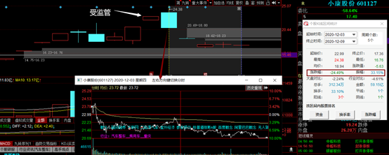 由于12月1日、12月2日连续2天强势涨停,12月3日小康股份的开盘似乎并未受此消息影响,但开盘5分钟后就杀跌到绿盘,尾盘封死跌停,次日竟一字跌停开盘。截止今日,小康股份5天的跌幅就跌近25%。