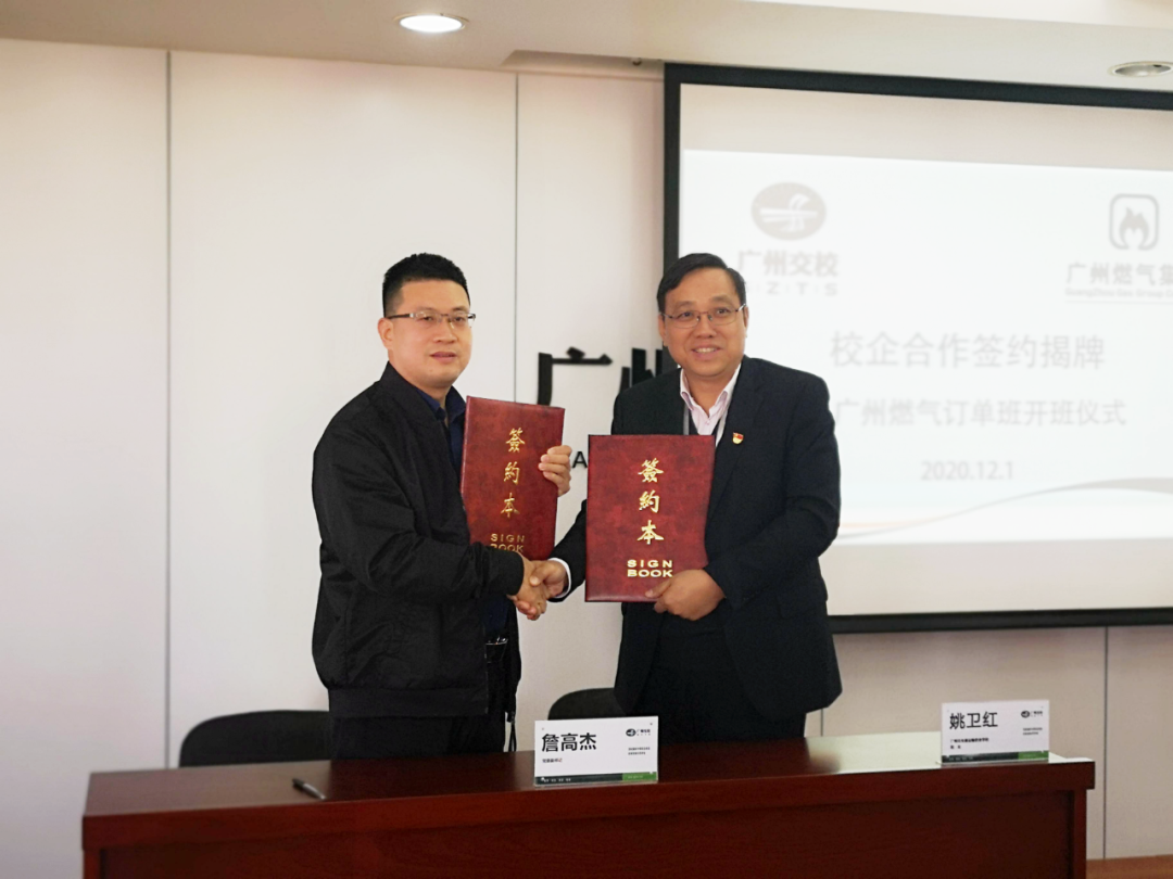 12月1日,广州燃气集团与广州市交通运输职业学校校企合作签约揭牌暨“广燃订单班”开班仪式在广州交通运输职业学校顺利举行,燃气集团党委副书记詹高杰,广州交通运输职业学校校长姚卫红、副校长张燕文、燃气工程教学部副主任陆文美以及“广燃订单班”全体19名同学等共同出席了仪式。