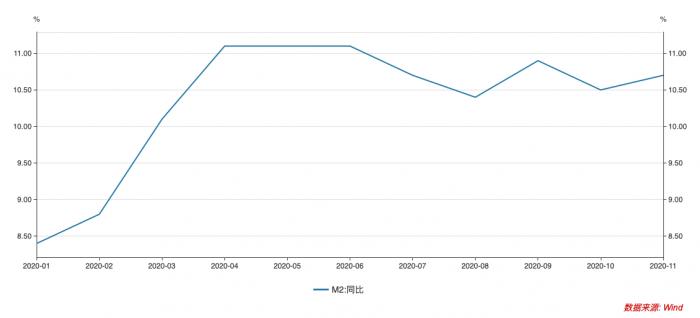 值得关注的是,11月M1M2“剪刀差”继续收窄。去年11月两者的差值为4.7个百分点,在2020年1月上升至8.4个百分点。此后,两者差值2月回落后又在2020年4月达到高点,为5.6个百分点,5月开始持续收窄,11月降至0.7个百分点。