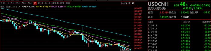 12月9日,北京时间12点左右,离岸美元兑人民币跌破6.50关口,最低一度触及6.49825,续创2018年6月以来的低点,日内一度波动200点。