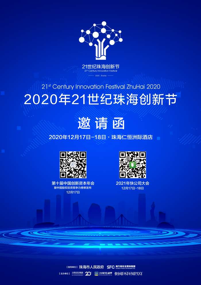 在此背景下,由珠海市政府和南方财经全媒体集团作为指导单位,21报系发起主办“2020年21世纪珠海创新节”系列活动。其中,“中国创新资本年会”将以资本为纽带,链接资本和企业,培育创新生态;“快公司大会”则持续跟踪全球创新动态,汇聚创新公司和创意人物,深度服务地方政府产业升级。