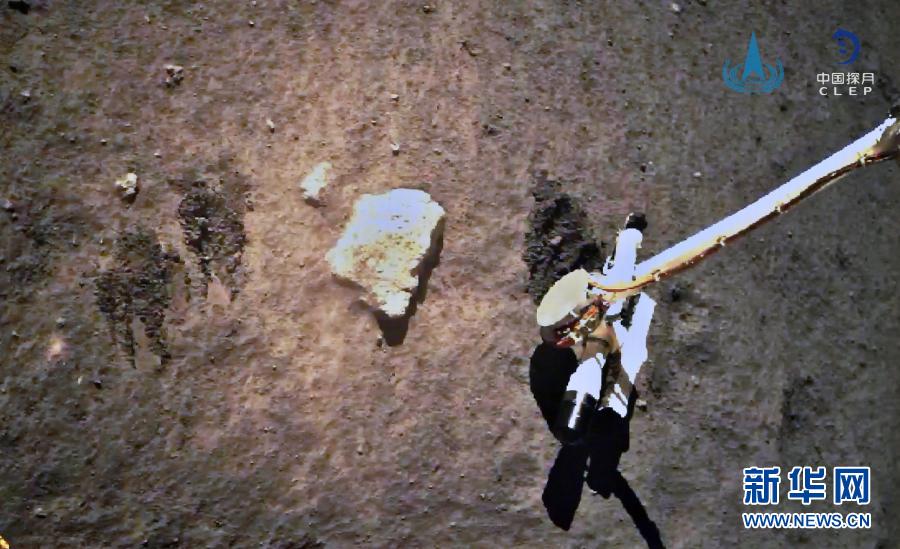 12月2日,嫦娥五号探测器在月球表面自动采样。新华社发(国家航天局供图)