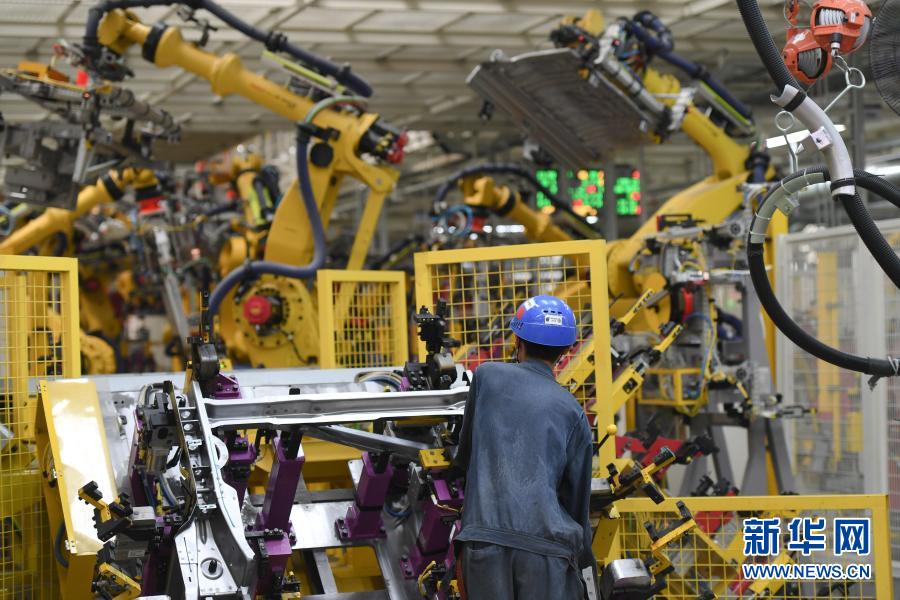 9月15日,在上汽集团乘用车宁德基地车身车间,工人操作机器人分拼汽车板材。新华社记者宋为伟摄