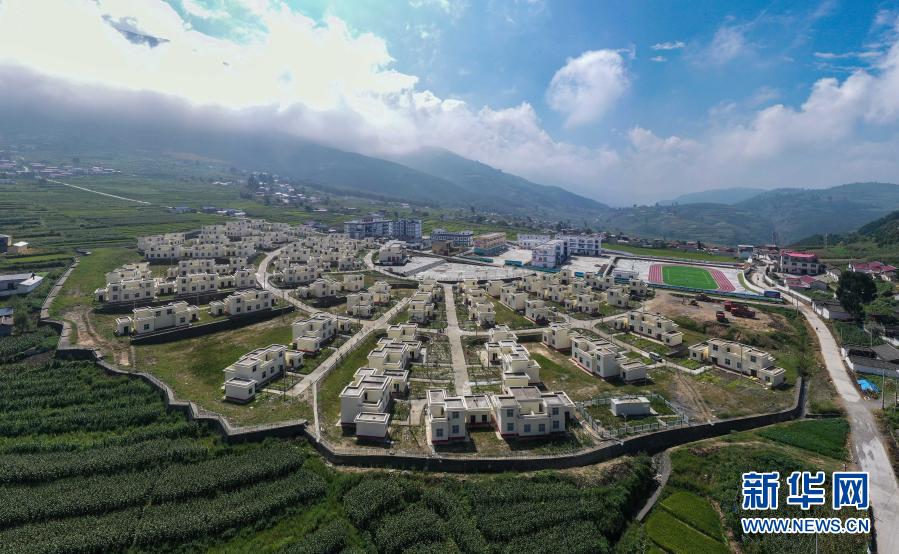 这是9月1日在四川省凉山彝族自治州喜德县鲁基乡中坝村拍摄的易地扶贫搬迁安置点(无人机照片)。新华社记者王曦摄