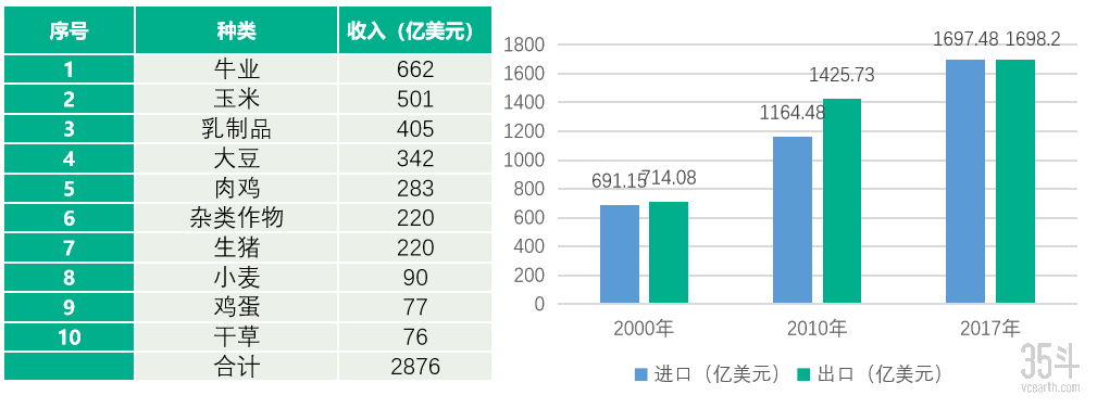 图:美国农业前十大种类农产品/美国农产品进出口数据