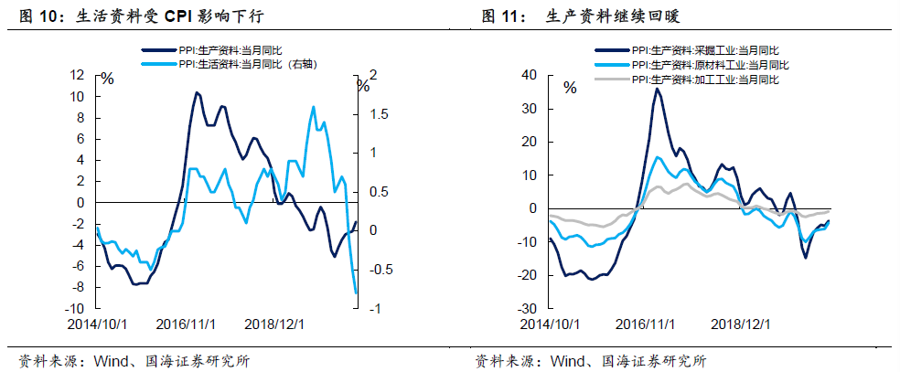 PPI总体表现改善,主要源于11月份国际原油反弹,并且制造业中下游行业已经进入主动补库阶段,链条式拉动上游产业需求。从中长期来看,根据我们之前的预测,明年PPI增速峰值将出现在5月,在此之前PPI方面仍将持续改善。