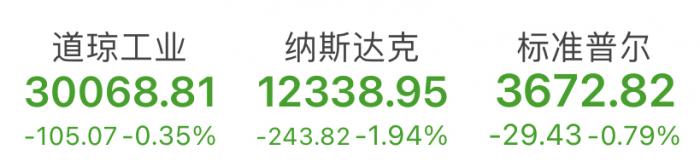 美国东部时间12月9日,由于新一轮刺激计划继续“难产”,三大股指集体收跌。截至收盘,道琼斯工业平均指数跌0.35%,报30068.81点;纳斯达克综合指数跌1.94%,报12338.95点;标普500指数跌0.79%,报3672.82点。