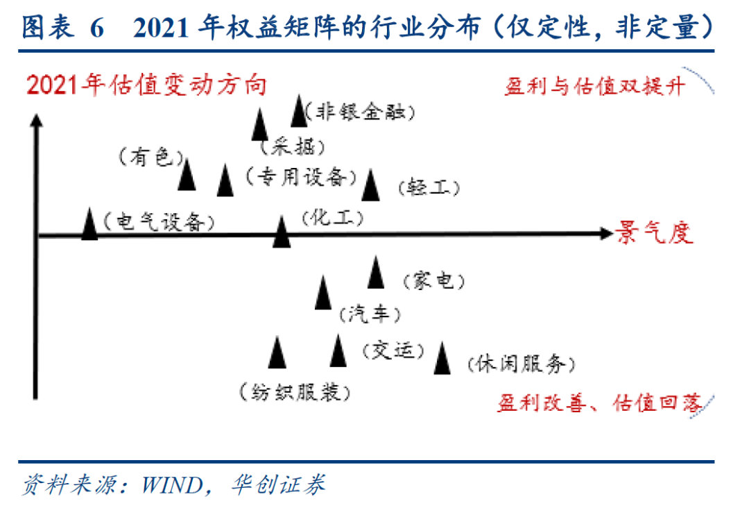对于权益而言,影响定价的流动性指标是超额流动性,即M1同比-名义GDP同比,决定了估值的变化。明年一季度之前,M1同比和名义GDP同比同步修复,权益压力不大。但关注一季度之后M1回落带来的超额流动性收缩,或形成杀估值的压力,指数估值承压,行业估值中性收敛。结合我们对于经济基本面修复动能的判断,预计“景气度向上+估值分位数偏低”的这部分行业出现戴维斯双击个股的可能性最高,包括专用设备、轻工、化工、电气设备、非银金融、采掘、有色,需认真把握。