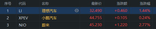 昨晚造车新势力,低开高走。蔚来汽车盘初跌4.8%后转涨,收涨2.8%;小鹏汽车收涨0.5%,盘初曾跌3.9%;理想汽车收涨1.4%,盘初曾跌3.5%,比亚迪美股粉单涨0.9%,盘初曾跌1.6%。