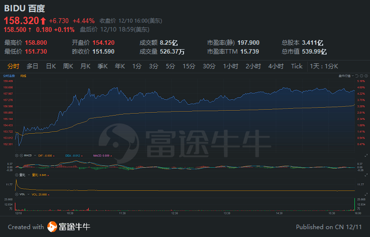 百度涨4.44%创一年半新高,或延长收购YY的交易时间;趣头条涨近10%,此前回应称与腾讯阿里洽谈出售事宜子虚乌有;中概造车新势力止跌转涨。