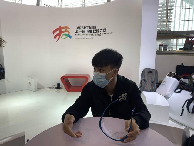 钟正二是广州市技师学院的学生,也是第一届全国技能大赛省赛原型制作项目的选手。见到钟正二时,他手里拿着一副防护镜,这已经成了他的显眼标志。钟正二个子瘦小,却相当健谈。他告诉记者,国赛开赛后,他在比赛场馆内直播介绍不同的比赛项目,这为他吸引来不少新粉丝。