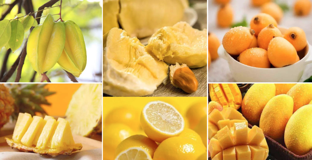 不管是芒果、榴莲,还是凤梨、柠檬、百香果,甚至小众的杨桃、枇杷,都是“明黄本黄”。