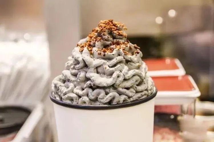 比如曾经在社交平台大火的“椰子灰冰淇淋”、黑芝麻奶盖,以及在小红书上高赞的灰色蛋糕。