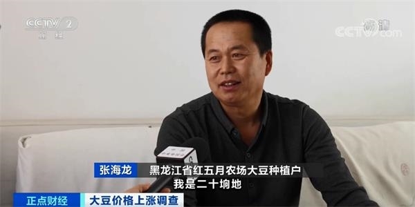 黑龙江省红五月农场大豆种植户张海龙:我是20垧地,一垧地纯剩7000元多一点,今年共计挣14万元多点,能挣钱都开心。