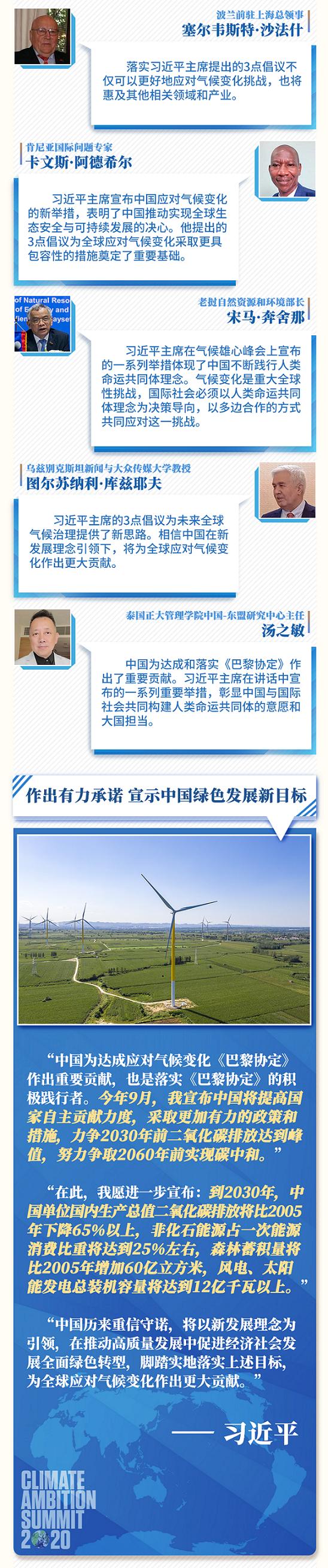 海外各界人士表示,习主席的重要讲话为全球气候治理提振雄心并提供新思路,彰显中国与世界各国携手助力《巴黎协定》行稳致远的决心,展现了中国重信守诺、为全球应对气候变化作出更大贡献的大国担当。