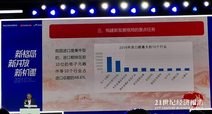 他表示,中国的进口属于集中型进口,进口额排在首位的是电子元器件,其他还有资源性产品,前十大行业的进口额占全国进口额的48%。中国进口多的,主要是两类,一类是高技术产品,还有一类是资源性产品。