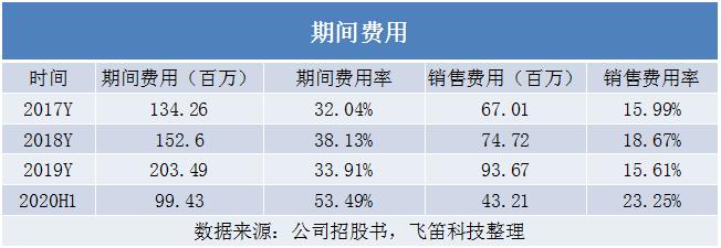 主要原因在于销售费用率的波动,报告期内,公司的销售费用率分别为15.99%、18.67%、15.61%和23.25%,2018年和2020年上半年的期间费用率较高。公司解释为人员规模的增长,以及2020年上半年因季节性收入较小,而费用支出具有一定的刚性,因此销售费用率较高。