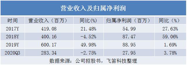 据招股书最新数据,截至2020年三季度,公司实现营收3.83亿元,同比下降2.75%,而净利润为2795万元,同比实现3.78%的增长,公司解释为因提升了项目实施效率,项目回款情况较好,且毛利率有所提高,因此盈利能力提升。公司收入存在季节性特征,一般下半年收入偏多,因此不同报告期内的数据对比价值不大。